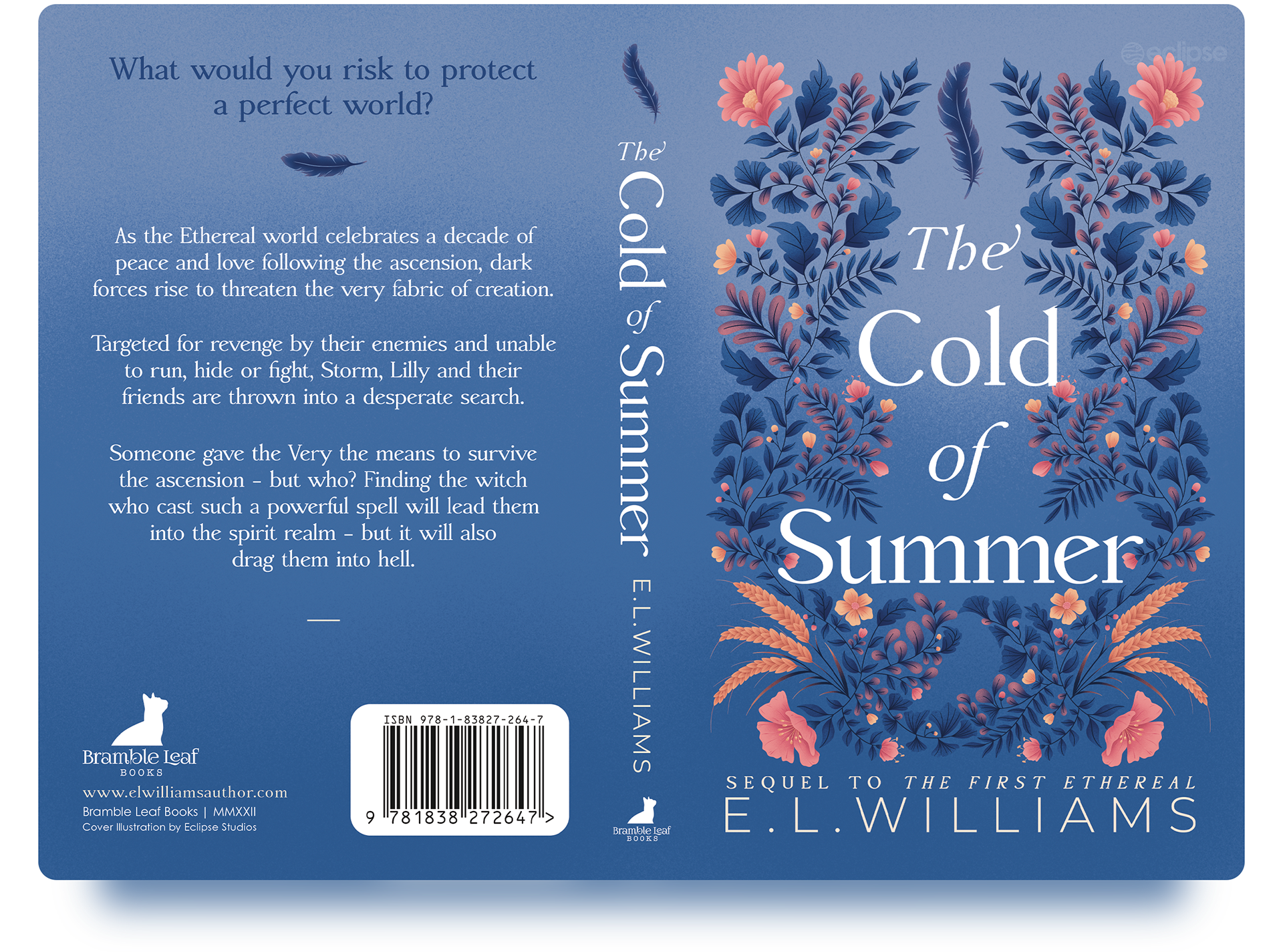 As with the previous book in the series, this novel would be available as both an eBook and a paperback through both Amazon/Kindle and IngramSpark, as well as a personal print run by Williams from a UK based print studio. With the front cover artwork being similarly intricate to ‘The First Ethereal’, I wanted to continue the design theme of keeping the spine and back cover simpler and focusing mostly on the text elements.