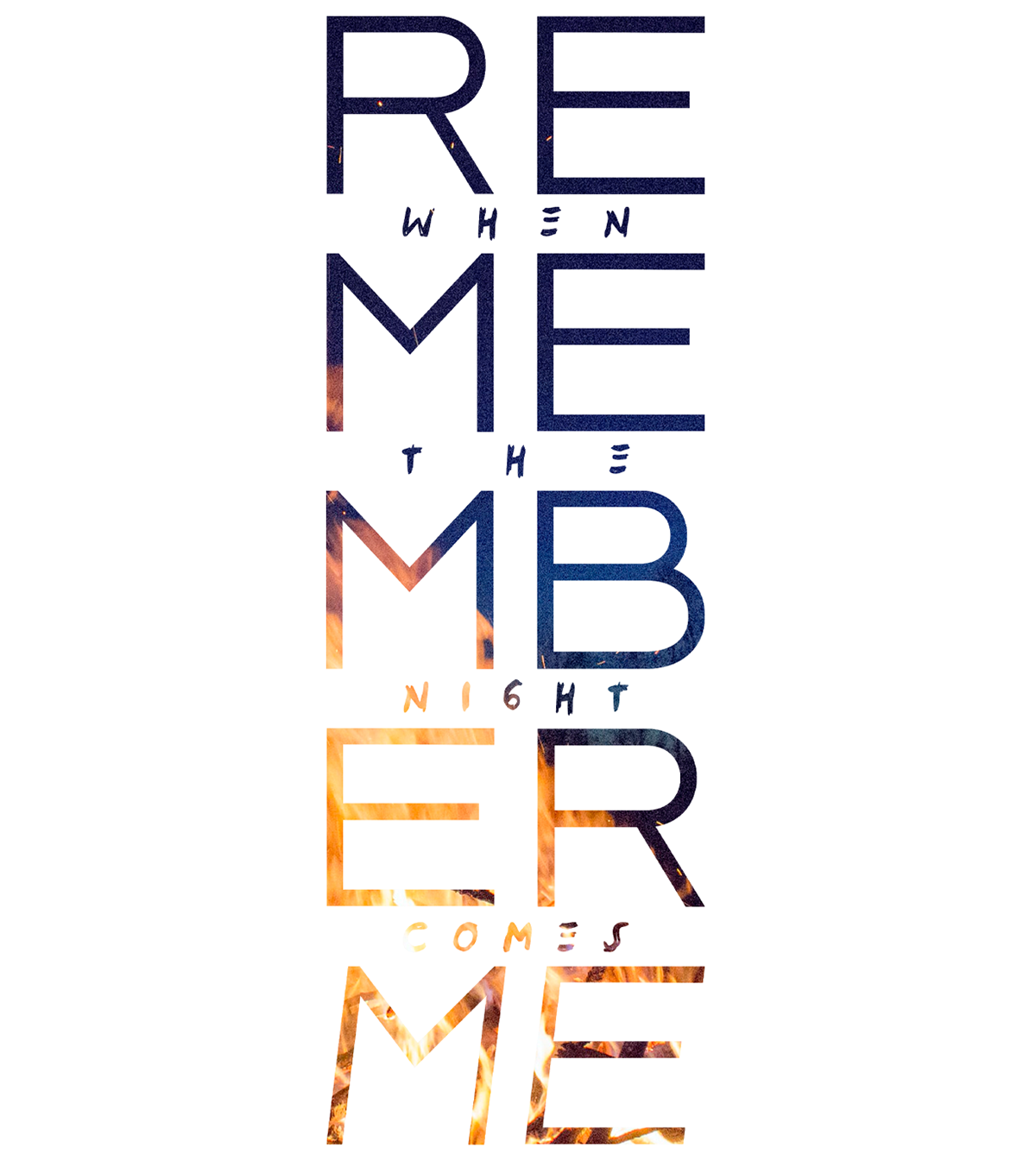 The text, no wider than the figure, complements the striking and evocative backdrop. The italicised second word subtly differentiates between the first word and the second while keeping a consistent design.